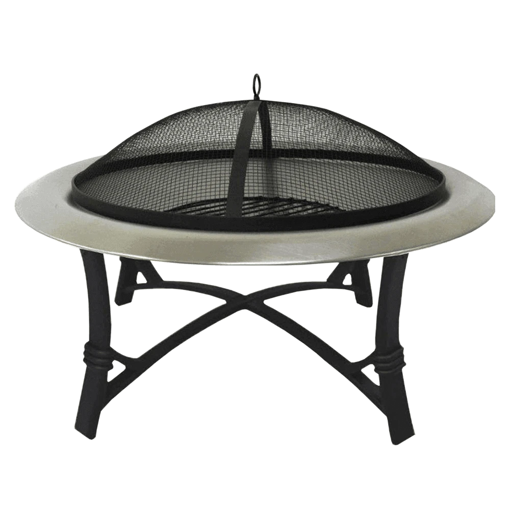 The new contemporary stainless steel fire pit. It comes with matt painted mesh cover & poker.