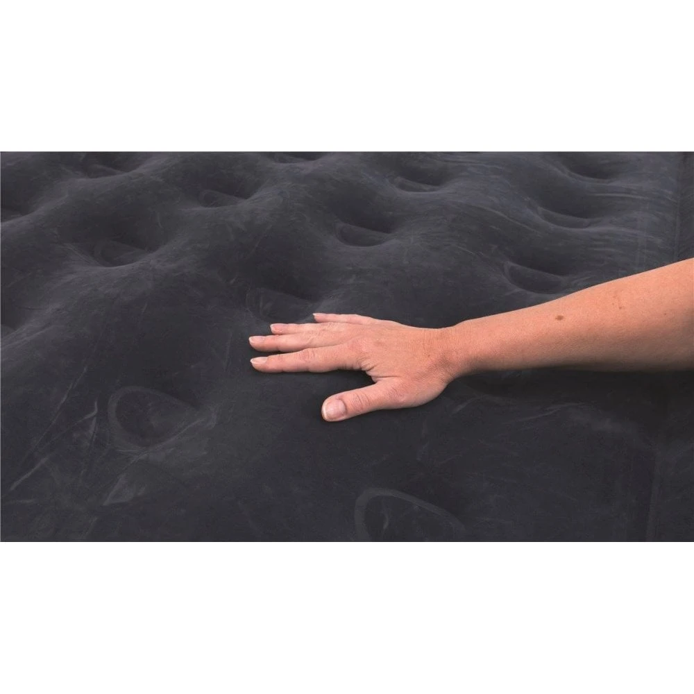 The 3-layer Flock Superior airbed from Outwell features a built-in pump for convenience; the pump comes with a UK plug for power.