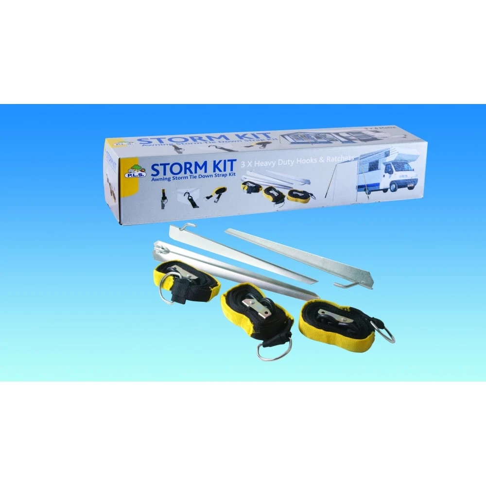 We recommend that marquees and awnings are secured using the tie down kits on 3 points, this kit is fitted with heavy duty hooks and ratchets and is ideal for standard awnings, gazebos and motorhome/campervan wind out awnings.